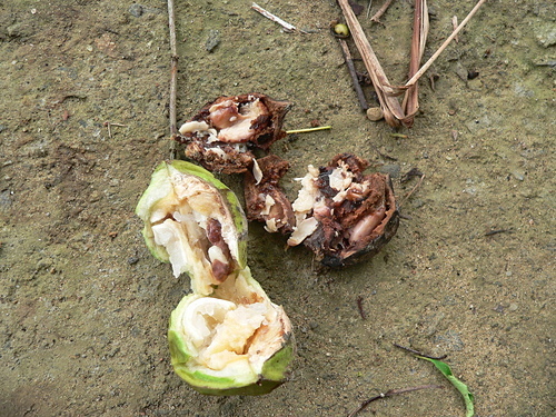 油桐花謝後,枝頭上的油桐果逐漸長大成熟,當果子由綠色外皮轉為乾枯褐色後掉落地面。往昔每年重陽節過後,老人家會拎著麻布袋,上山撿拾油桐果。曬乾後將油桐仔挖出,留下的乾殼是絕佳的薪柴,易燃且耐燒。蒐集的油桐仔在1975年代1斤可賣4元,彷彿是上天發給老人家的私房錢。油桐籽榨出的桐油具有很好的防水性,可作為客家紙傘面的防水油及油漆原料。然而,早年人人搶拾的油桐果,在日益富裕的今天,卻任其掉落滿地,已無人問津。