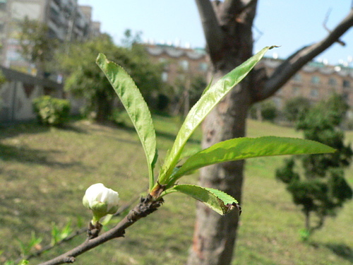 碧桃為落葉小喬木,小枝條為紅褐色,花單生或兩朵生於葉腋,花朵重瓣,開粉紅色花,也有白色和深紅色花的變種,原產於中國西北、華北、華東和西南等地,花期為4~5月,但在台灣山區,碧桃花大多於2~3月間開花。