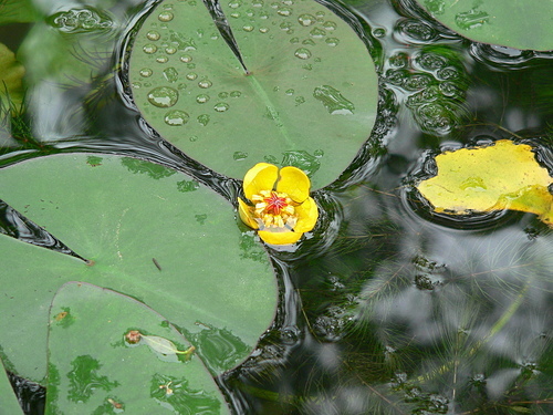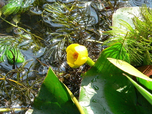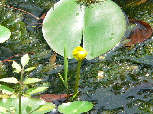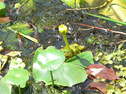 賞 花 期:全年 萍蓬草是池塘性植物,現有的產地集中在桃園境內的池塘:楊梅有四座、龍潭有七座。這些古老的池塘,因為是蓄水池、風水池,或是接受地方政府補助,才免於被填塞,為萍蓬草保留了生存環境。 萍蓬草英文名稱為 yellow water lily (黃睡蓮),顧名思義它和睡蓮有關,葉近於圓形浮貼水面,在基部還有一個V形的缺刻,最早和睡蓮同在睡蓮屬(Nymphaea);不過萍蓬草為子房上位,種子不具假種皮,相對於中位子房、種子具假種皮的睡蓮屬,有很大的不同。萍蓬草的花比睡蓮小很多,而且也沒有那麼多豔麗的花部構造,然而當一大片的萍蓬草黃色的花綻放水中時,自然也有它吸引人的地方。由於其果實形狀像酒壺,所以有Brandy Bottle(白蘭地酒瓶)的稱呼。