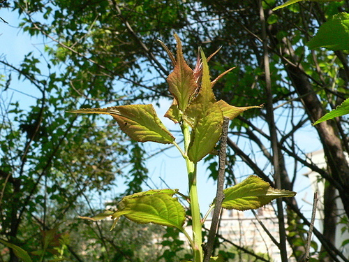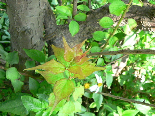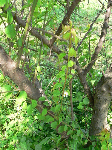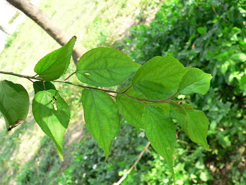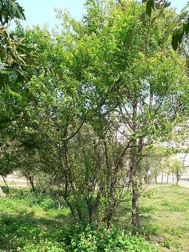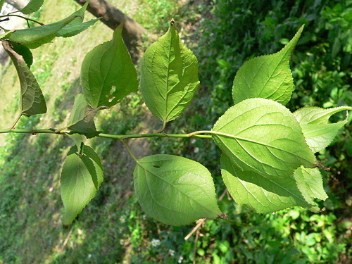 落葉喬木,株高5~10公尺。幹直立,幼枝呈綠色,小枝光滑,老枝呈刺狀。葉闊披針形,細銳鋸齒緣,互生。花無梗,白色,單瓣或重瓣。核果球形。