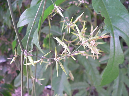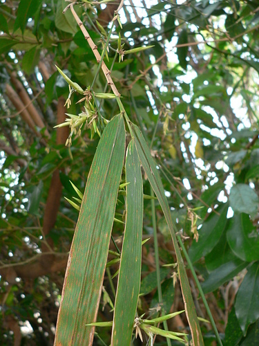 每個竹節都有交纏的刺竹,花由小穗上多數的花組成。