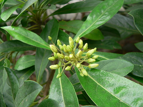 佇足仔細一看,只見蘭嶼海桐結滿一束束清香的白色花束,好像新娘捧花,喜氣洋洋。