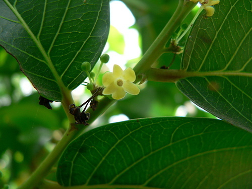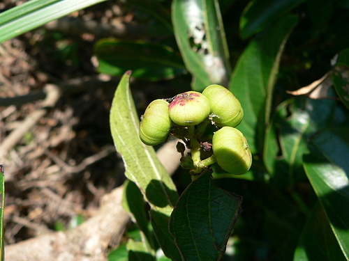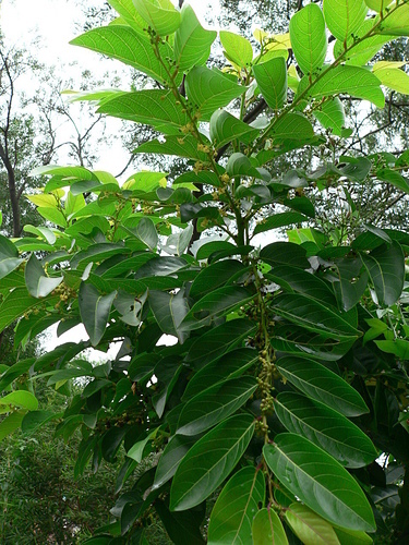 常綠喬木,可達7公尺高。單葉互生,橢圓形,5-15公分長,3-8公分寬,先端鈍,葉全緣。