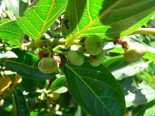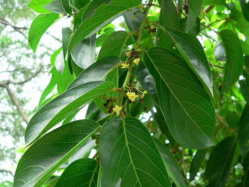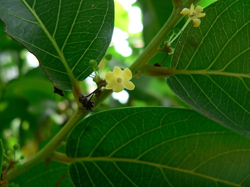 喬木。葉單葉長橢圓狀卵形或長橢圓形,長4.5~15cm,寬3~8cm,基部心形或圓形,略歪,葉下表面灰綠色。