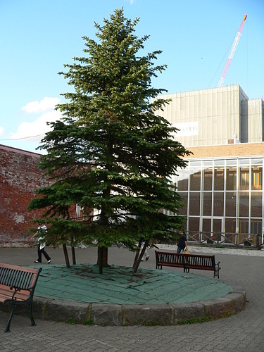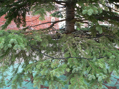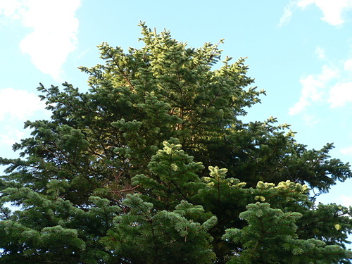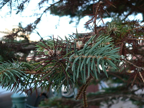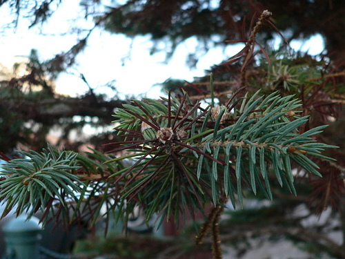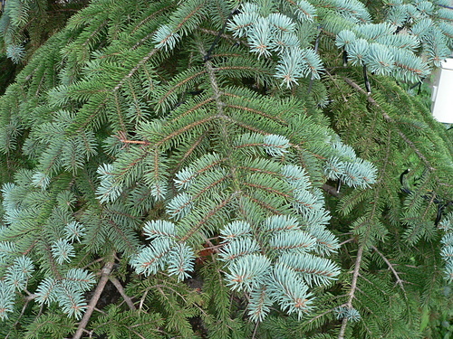 特性: 常緑の大高木。1年生枝は赤褐色で褐毛が密生している。葉の断面が四角形でトウヒ属のうちもっとも小さい。球果は円筒形、はじめ紫紅色のち褐色となる。長さ5~8cm、径2~3cm。