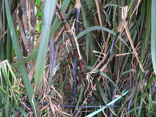除此之外,有一種莖色青黃的甘蔗,在民間有零星栽種,因為莖粗如竹,所以俗稱「竹蔗」,也歸到白甘蔗之列;另外有一種莖色紫紅,莖圍很細,株高3至4公尺,比較特別的是它的葉片帶點紫紅色,因為有藥用的價值,俗稱「藥蔗」,也被刻意的少量栽種。