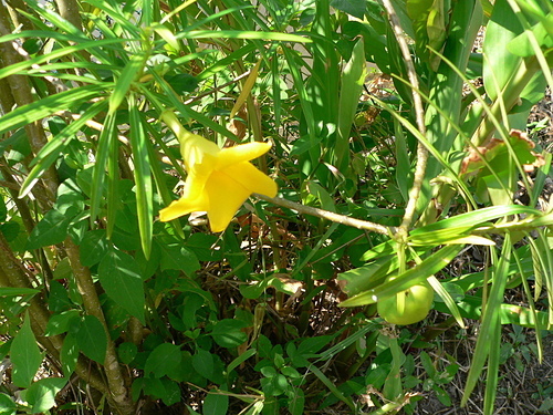 花:單生或束朵叢生而呈聚繖花序,頂生,花冠花萼皆為5枚,深裂,花形為漏斗形,花色為黃色,雄蕊5枚,子房2室,各具胚株2個,花期5月至8月