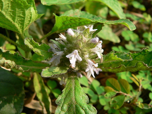 多年生草本植物,莖極短,被毛;葉倒卵形至倒披針形。花白紫色。