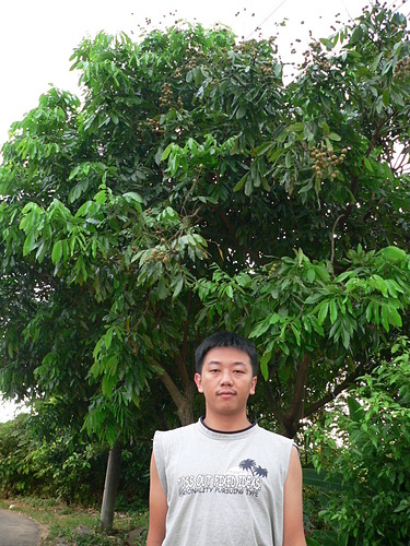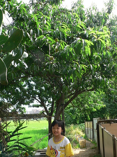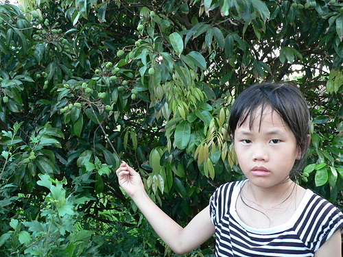小女兒與荔枝樹 96.6.2 攝於大埤塘旁果園