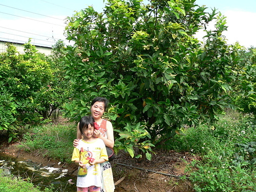小女兒與桃樹 96.6.3 攝於復旦散步道果園