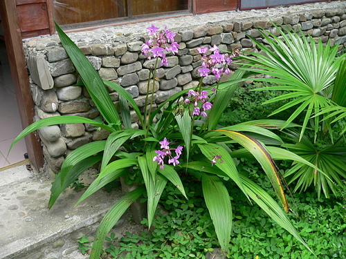 紫蘭正確的名稱為紫苞舌蘭,屬於紫苞舌蘭屬之藥用植物,原生台灣東部及蘭嶼,由於其花色鮮艷,值得開發盆栽花,花蓮區農業改良場以收集紫色及紫粉色紫蘭(紫苞舌蘭)兩種品種。