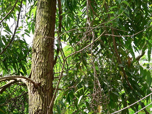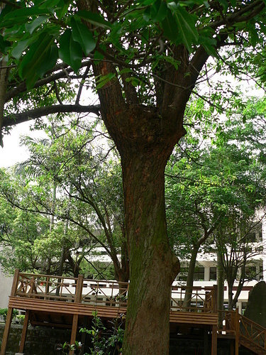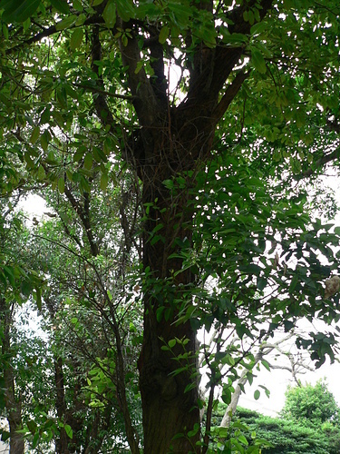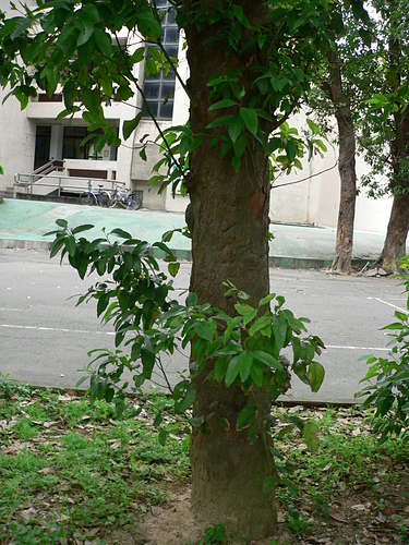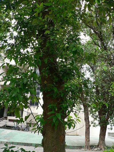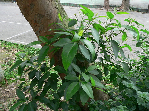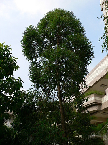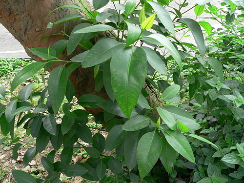 特 徵 校園或路旁常見成列栽植,葉、花、果都有清香,株高可達18公尺,樹皮粗糙柔軟。葉互生,卵狀長橢圓形或披針形,革質,全緣,揉開具香味。秋季開花,繖形排成聚繖花序,花冠白色,蒴果杯形。