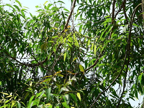尤加利的花是綠白色的,果實像是小陀螺一樣,葉子、花、果實聞起來都有香味。