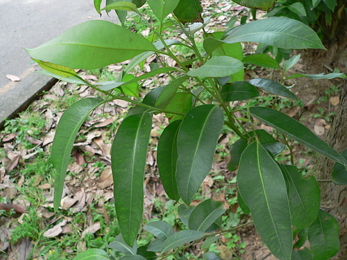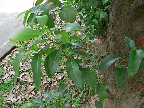 葉互生,卵狀橢圓形至長披針形,革質,先端銳形,基部楔形至截形;側脈略平行,頗明顯。