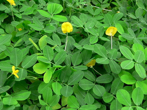 蔓花生為豆科多年生宿根草本植物,形似花生,有鮮豔的黃色花朵,花量多,綠色期長,觀賞性強,四季常青。