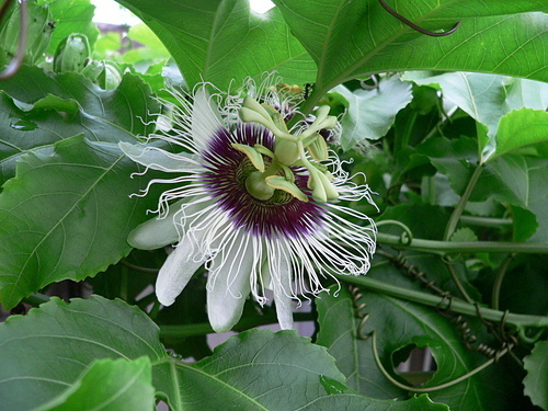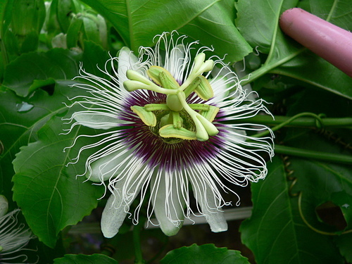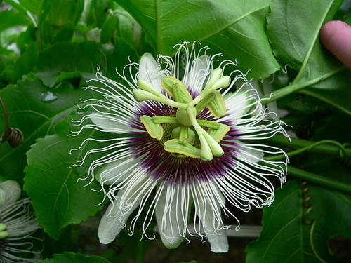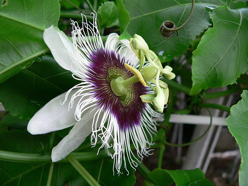 特性:所有的花都只有花萼、花瓣和花蕊,百香果多了一種迷人的綴飾─副花冠。副花冠是因為花朵上已經有了花冠,而花冠以外的裝飾構造沒有適當的名稱,就只好稱為副花冠了。