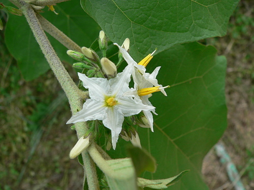 葉單一或成對,卵形或橢圓形,全緣或淺波狀5~7齒裂,被黃色星狀毛。