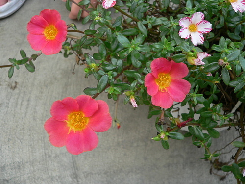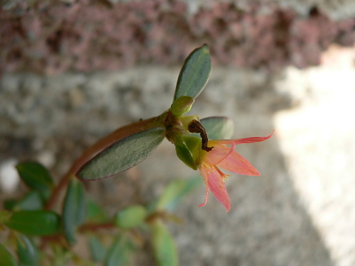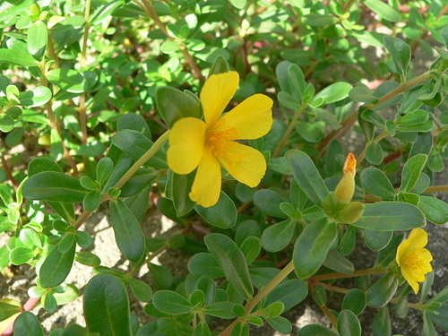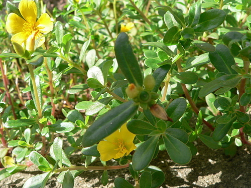 葉面摸起來很厚重,一看就知道屬於肉質葉片,馬齒牡丹莖具有匍伏性,是良好的地被植物,也可以以吊缽的方式栽種。