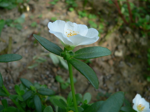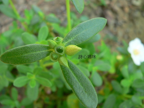 馬齒牡丹白花-花苞兒與果實 / 葉子形狀馬齒般寬平狀
