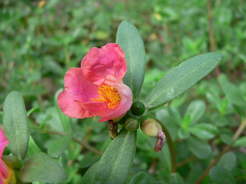 耐高溫且耐乾旱的馬齒牡丹,常常可以在野外發現,可以說是夏日代表性的植物之一,馬齒牡丹的開花習性非常特殊,只在白天的早上開花,下午花朵就閉合起來,所以有半日花的名稱。