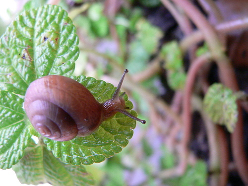 蝸牛爬行緩慢... 96.3.2 攝於毛蛤蟆草叢