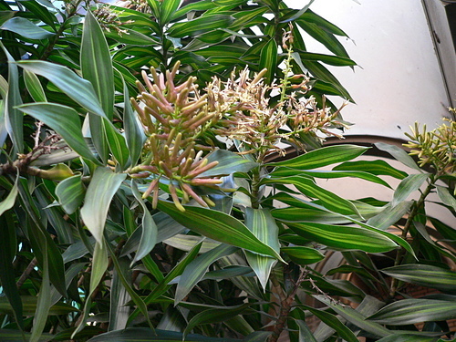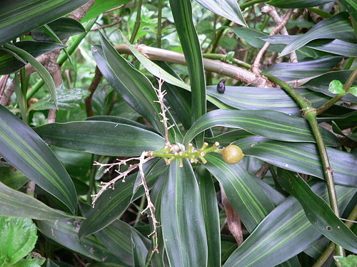 葉劍狀披針形,無柄,革質有光澤。葉中有黃色縱紋。植株長高後,莖幹易彎斜。全日照、半日照均可。性喜高溫多濕,但耐旱、也耐陰。