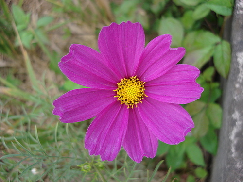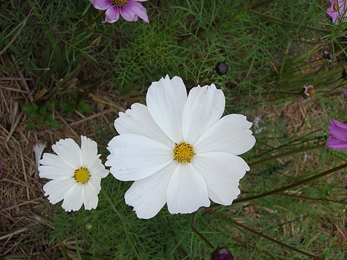 3.花頂生或腋生,花莖細長,舌狀花瓣, 8片,中心筒狀呈黃色,花形有單辦、重辦,花色有白、黃、桃紅、紫紅等色。