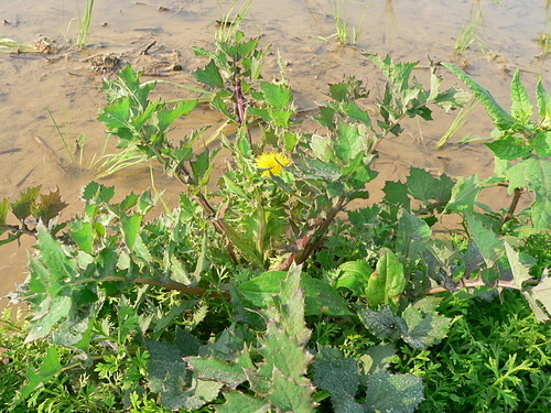 葉基耳狀抱莖,鋸齒狀,葉背呈白色。可當救荒的野菜。