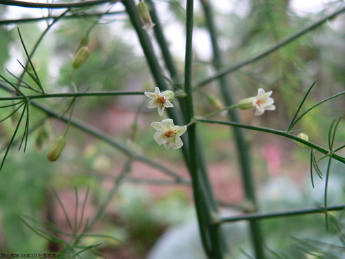 植物特性:多年生蔓性草本植物,初生呈直立性莖,而後伸長則呈蔓生狀,莖上有互生之細緻平展的羽狀複葉(實際為小枝),莖極纖細,圓柱形多分枝。假葉刺毛狀,密生呈平面狀,鮮綠色,莖刺上生小短刺。
