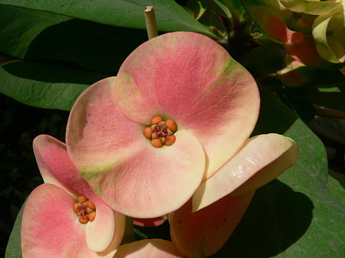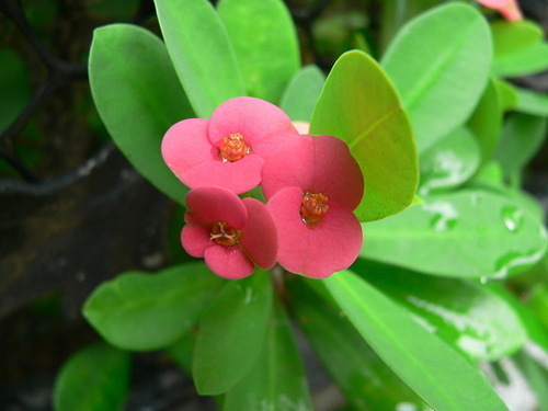 1.大花麒麟:花朵大而多, 莖較粗壯直立,且刺的排列呈現螺旋狀較有次序,葉片則全年常綠。