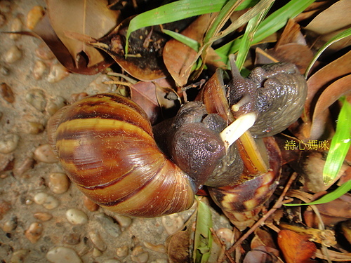 <p align="center"><br> <br> <img src="https://pic.pimg.tw/tracysung2002/1686352385-2896536212-g.jpg"/></p> <p align="center">交配後會產卵於土中或落葉底層</p> <p align="center"><br> <img src="https://pic.pimg.tw/tracysung2002/1684180445-3800590458-g.jpg"/> </p> <p align="center"><a href="http://tw.myblog.yahoo.com/jw!MSvc1AKGAhZKP04_M5pDq_ZY3OoI/photo?pid=213564">非洲大蝸牛</a>交配中 </p> <p align="center"><img src="https://pic.pimg.tw/tracysung2002/1686175772-112567770-g.jpg"/></p> <p align="center"> </p> <p align="center"><img src="https://pic.pimg.tw/tracysung2002/1684444125-3137436971-g.jpg"/></p> <p align="center"> </p> <p align="center"><img src="https://pic.pimg.tw/tracysung2002/1684144240-108938649-g.jpg"/></p> <p align="center"><img src="https://pic.pimg.tw/tracysung2002/1685349493-1261905586-g.jpg"/></p> <p align="center">非洲大蝸牛 白色交配器 </p> <p align="center"><img src="https://pic.pimg.tw/tracysung2002/1685145421-30478429-g.jpg"/></p> <p align="center"><br> <img src="https://pic.pimg.tw/tracysung2002/1684116822-87258522-g.jpg"/></p> <p align="center">蝸牛是雌、雄同體,異體繁殖,也就是說交配中的兩隻蝸牛都能產卵</p> <p align="center"><br> <img src="https://pic.pimg.tw/tracysung2002/1685349495-4220461971-g.jpg"/><br> <br> <img src="https://pic.pimg.tw/tracysung2002/1689246095-580939854-g.jpg"/><br> <img src="https://pic.pimg.tw/tracysung2002/1685349496-604742971-g.jpg"/><br> <img src="https://pic.pimg.tw/tracysung2002/1686175773-2656281955-g.jpg"/><br> <img src="https://pic.pimg.tw/tracysung2002/1686168783-3976577973-g.jpg?v=1686168783"/><br> <img src="https://pic.pimg.tw/tracysung2002/1689270490-1996511998-g.jpg"/></p> <p align="center"><img src="https://pic.pimg.tw/tracysung2002/1689246097-183230662-g.jpg"/></p> <p align="center">102.8.18 社區公園入口小花壇</p> <p align="center"> </p> <p align="center"> </p> <p align="center"><a href="http://gaga.biodiv.tw/9507bx/057.htm">非洲大蝸牛</a></p> <p align="center">腹足綱 柄眼目 </p> <p align="center">非洲大蝸牛科 <br> </p>