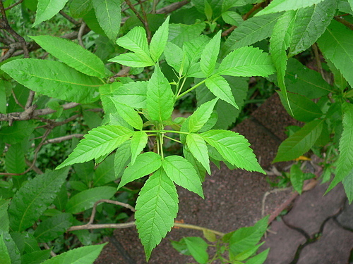葉對生,奇數羽狀複葉,少有單葉。小葉闊披針形或卵長橢圓形,細齒緣銳尖頭狹腳,全緣主脈綠色清晰。